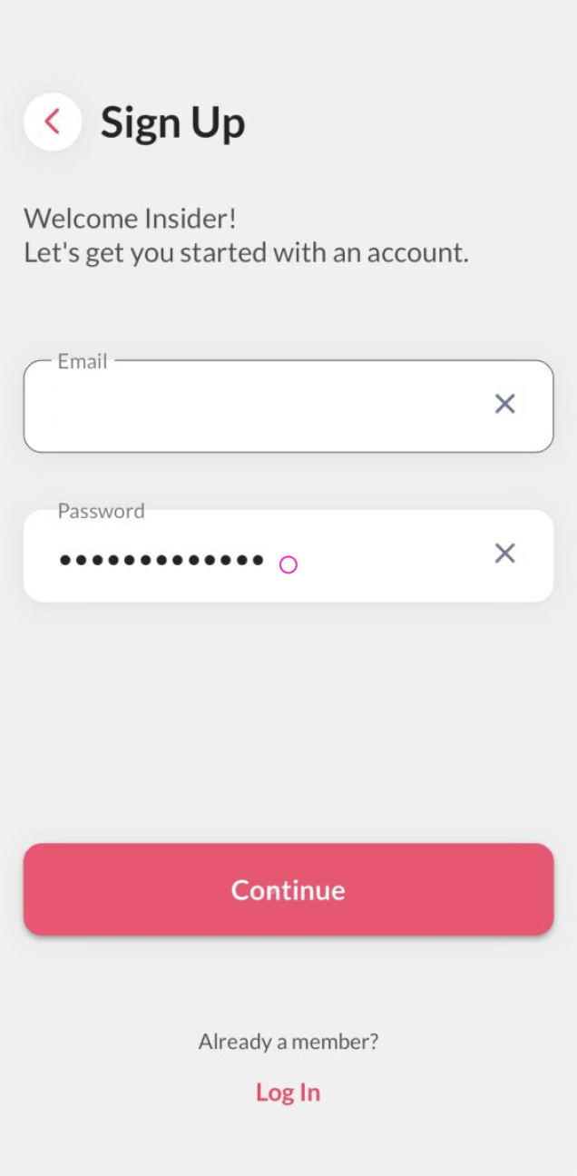 In diesem Fall erstellst du dein Profil, indem du deine E-Mail-Adresse angibst und ein Passwort auswählst. SELBE EMAIL: Verwende unbedingt dieselbe E-Mail-Adresse, mit der du im Webshop bestellt hast und die du für die Libre App verwendet hast. Nur so erkennt unser System automatisch dein Abo in der App. - Bist du bereits User:in der Hello Inside App?